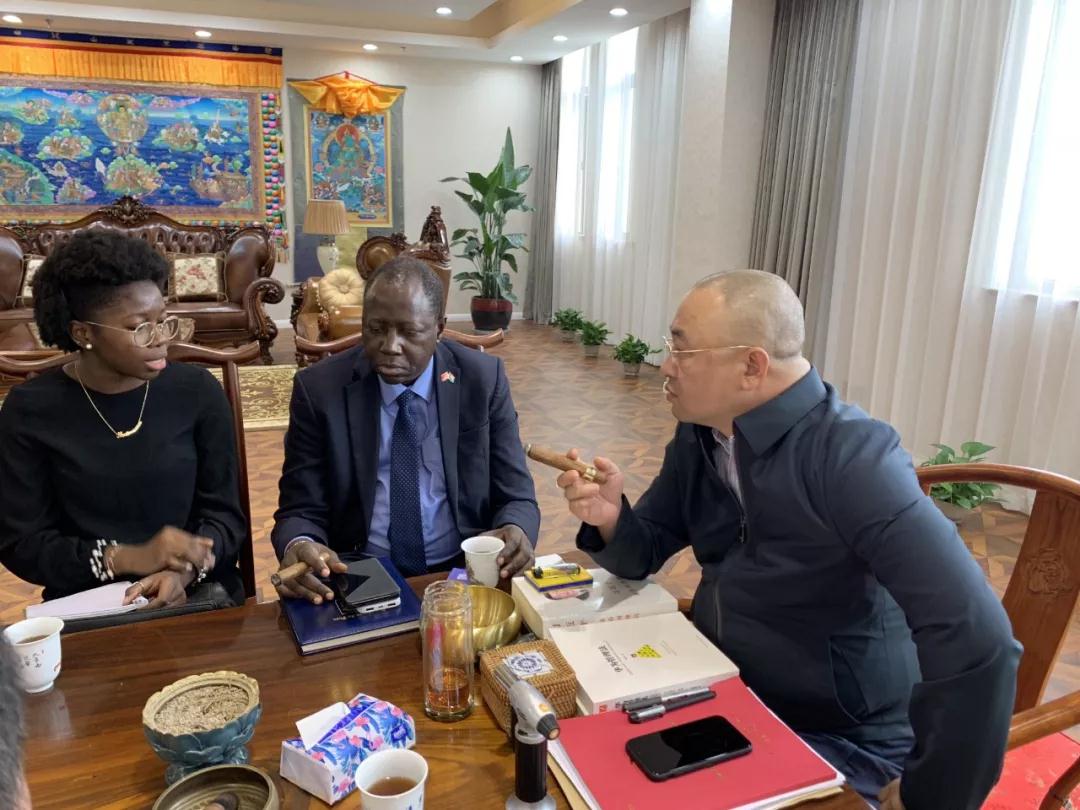 当天下午,伊萨-约瑟夫-帕雷大使一行来到s36沙龙会集团,与李玉保主席展开友好洽谈,并随后参观公司,熟悉集团产业及产品。第二天,代表团前往湖北省武穴市参观基地,进一步了解s36沙龙会绿色生态农业的种植工艺技术。