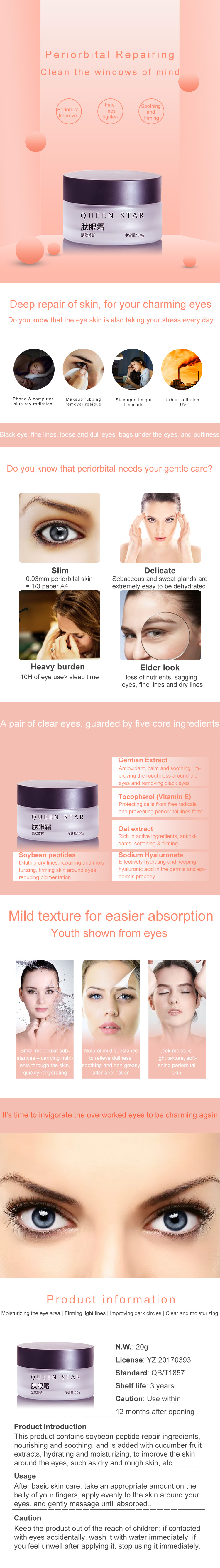 How to apply: After the basic care, apply a proper amount with your fingers, apply evenly to the skin around the eyes, gently massage until absorbed.